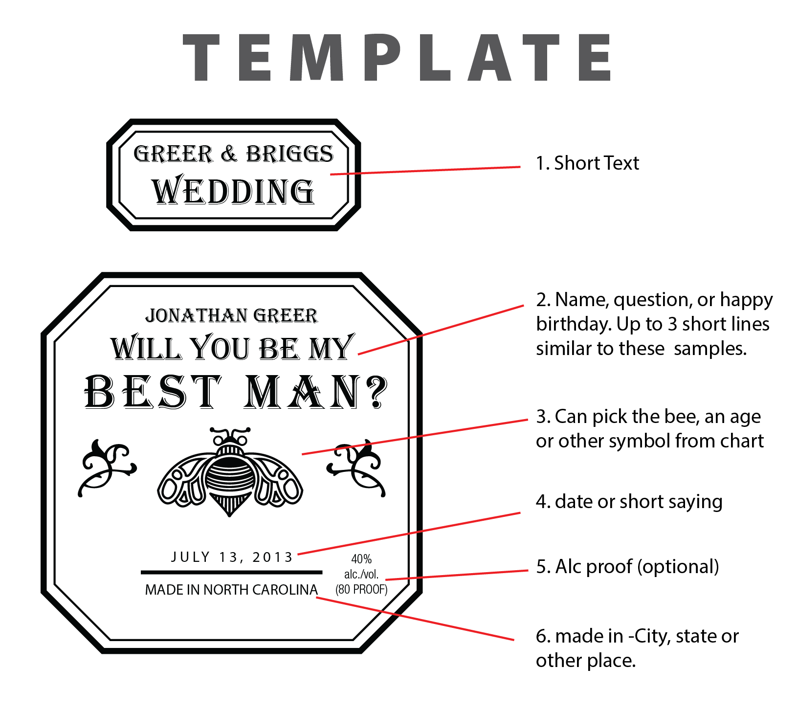 - (Top Label) a name, event, date or SHORT greeting -NOT ON 50ml BOTTLE