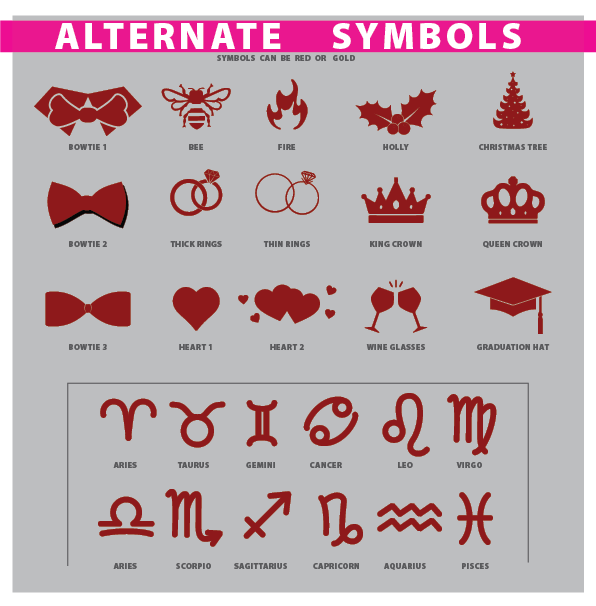 - Line 2: Short Text under symbol. (ex. Happy birthday, or wedding names)