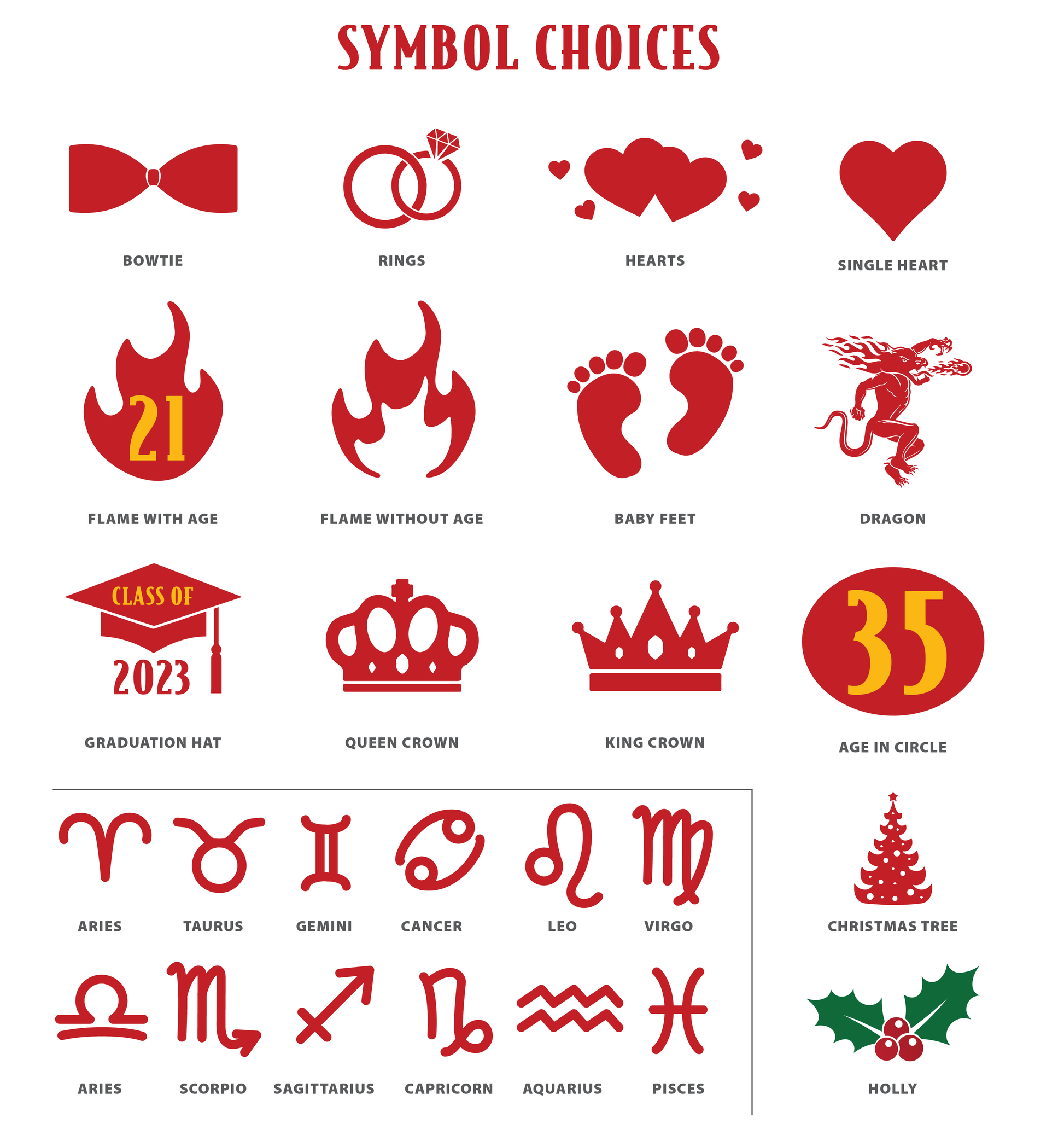 - Middle: What symbol would you like? What year/age?
